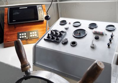 Syvingin ohjaamo huokuu menneiden aikojen tunnelmaa, mutta siitä huolimatta ohjaamo on varustettu moderneilla navigointijärjestelmillä.