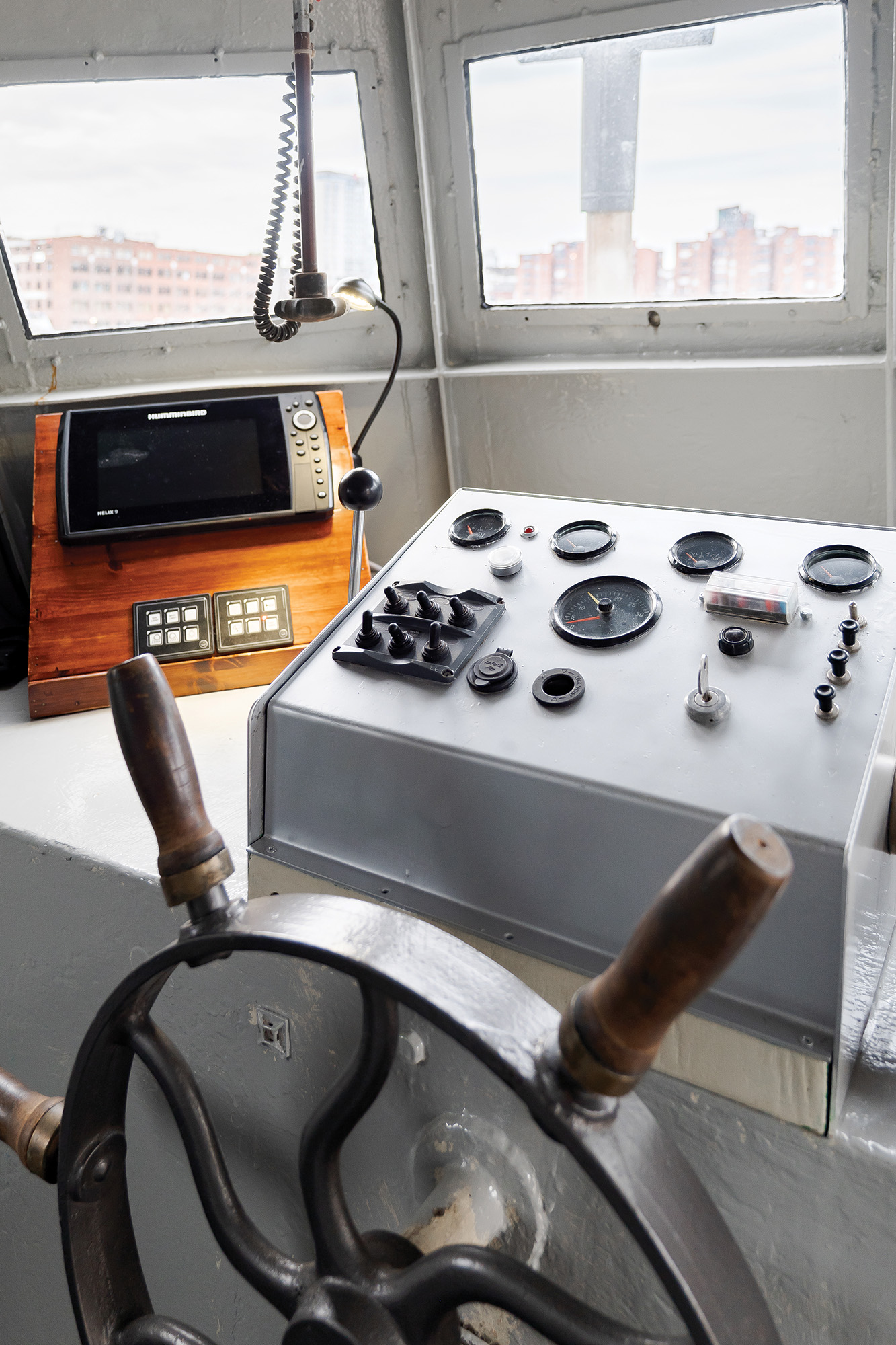 Syvingin ohjaamo huokuu menneiden aikojen tunnelmaa, mutta siitä huolimatta ohjaamo on varustettu moderneilla navigointijärjestelmillä.