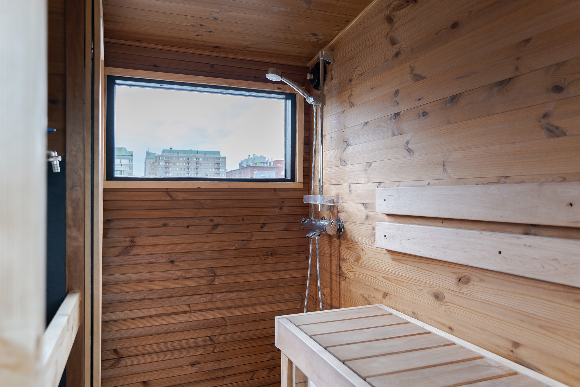 Saunatilassa on suihku josta tulee kylmä- ja lämmin vesi peseytymistä varten.